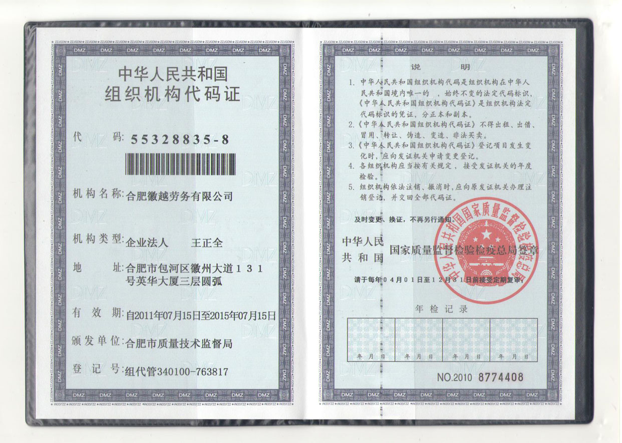 企業(yè)代碼證書(shū)